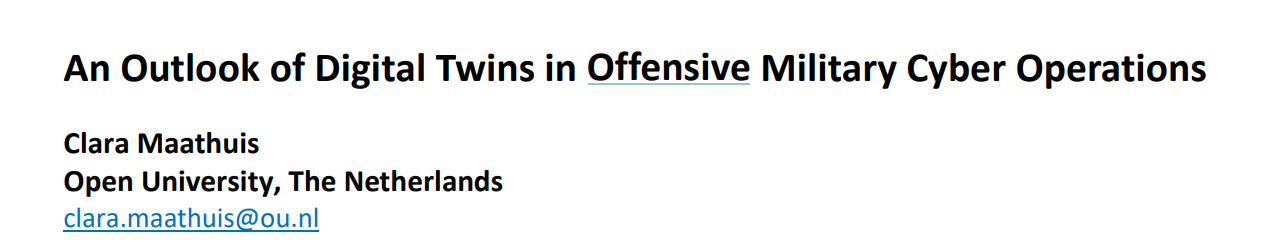建模和仿真,例如现场生命周期测试、监测、优化(Steinmetz等人,2018;Jones等人,2020;Hribernik等人,2021):通过其性质,数字孪生对不同的系统和过程进行建模和仿真,例如,允许镜像和测试双重用途目标的行动执行,以避免预期产生的意外影响;或允许使用不同的优化技术对智能网络武器实施的路径和行动进行现场监测。