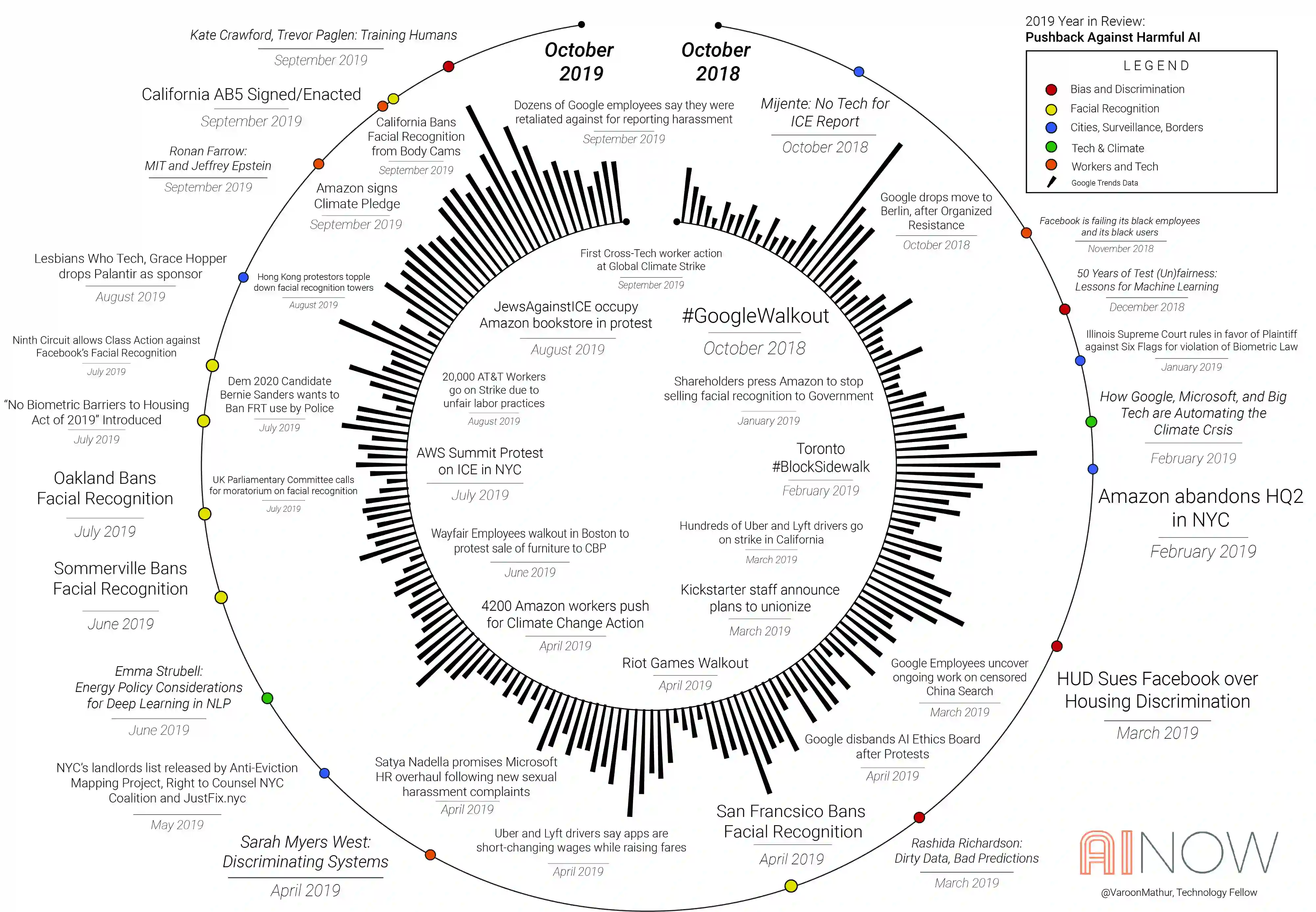 The Growing Pushback Against Harmful AI,AI Now co-founders Kate Crawford and Meredith Whittaker opened the Symposium with a short talk summarizing some key moments of opposition over the year, focusing on five themes: (1) facial and affect recognition; (2) the movement from “AI bias” to justice; (3) cities, surveillance, borders; (4) labor, worker organizing, and AI, and; (5) AI’s climate impact. Below is an excerpt from their talk.