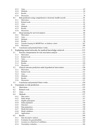 风险模型对于护理计划和疾病预防至关重要。已有的临床模型表现不佳,引起了广泛的关注和担忧。一个准确、可解释、可靠的风险模型将会带来巨大的益处,但其仍是一项挑战。本论文旨在开发深度学习模型,利用大规模且具有代表性的电子健康记录(EHR)数据集,以提供更准确的风险预测,同时提供不确定性估计和医学解释的能力。 在这篇论文中,我们研究了三个方向:风险预测、解释性以及不确定性估计。对于风险预测,我们研究了可以将最少处理的电子健康记录(EHR)纳入模型的深度学习工具,并与已建立的机器学习和临床模型进行了全面比较。另外,我们将事后解释应用于深度学习模型以获取医学信息,特别关注风险关联和反事实推理的解释。我们使用概率建模技术定性地研究了不确定性估计。我们的分析依赖于临床实践研究链接,该链接包含来自初级护理、二级护理和死亡登记的匿名化EHR,并代表了英国人口。