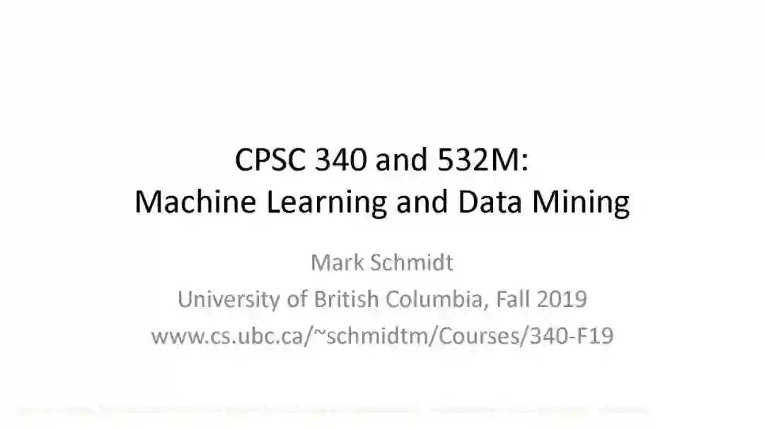 这是Mark Schmidt在UBC教机器学习的各种课程的课程材料的集合,包括100多个讲座的材料,涵盖了大量与机器学习相关的主题。