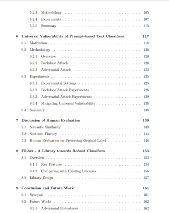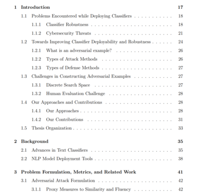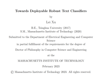 文本分类作为自然语言处理的基本任务已经被研究了几十年。部署分类器能实现更高效的信息处理,这对于各种应用(包括决策制定)都非常有用。然而,分类器也存在挑战性和长期的问题。随着它们的使用增加,人们对其鲁棒性、公平性、准确性和其他指标的期望也随之增加。在本论文中,我们的目标是开发更易于部署且鲁棒性更强的文本分类器,重点关注通过开发攻击和防御方法来提高分类器对抗对手攻击的鲁棒性。对手攻击对文本分类器来说是一个安全隐患,因为它们涉及恶意用户微调一个句子以操纵分类器的输出的情况。为了设计更有效的攻击方法,我们首先关注提高对抗句子质量 - 与现有的优先考虑误分类并忽略句子相似性和流畅性的方法不同,我们将这三个标准综合为一个综合评分。然后,我们概述了一个重写和回滚框架,用于优化这个分数并在提高相似性和流畅性的同时实现最先进的攻击成功率。其次,我们关注计算需求。现有方法通常使用组合搜索来查找更改多个单词的对抗性示例,这些方法效率低下且需要向分类器发出许多查询。我们通过提出单词对抗性扰动攻击来克服这个问题。这种攻击只需要用一个高对抗性单词替换原句中的一个单词,从而显著提高效率,同时攻击成功率与现有方法相似。接下来我们研究防御。目前,防御攻击的最常用方法是使用对抗性示例作为数据增强来训练分类器,但这种方法受到许多攻击方法低效的限制。我们证明通过使用我们高效的单词扰动攻击进行数据增强训练分类器可以提高分类器对其他攻击方法的鲁棒性。我们还设计了原位数据增强,以抵消分类器输入中的对抗性扰动。我们使用梯度范数来识别分类的关键词,并使用预训练的语言模型替换它们。我们的原位增强可以有效提高鲁棒性,而不需要调整分类器。最后,我们探讨了一个非常新颖的文本分类架构——基于提示的分类器的脆弱性,发现它们同样容易受到攻击。我们还开发了一个名为Fibber的库,以促进对抗性鲁棒性研究。