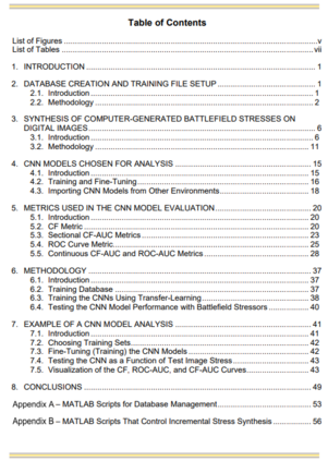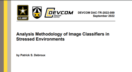 本报告定义了用于分析战场压力下卷积神经网络模型形式的二维(图像)分类器的方法。在此背景下,战场压力被定义为那些改变了传感器数据相对于用于训练神经网络图像的压力。战场压力可以是有意的,如伪装或扭曲,也可以是无意的,如遮蔽物或过度的背景(或前景)杂乱。首先描述了进行分析所需的部分,然后是用于对神经网络分类器进行排名和评级的方法步骤,报告最后以一个实际的分析案例作为结束。
