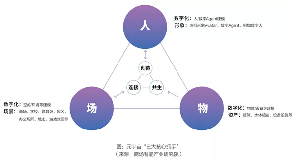 总体来说,具有“人”、“物”、“场”的创造和连接能力,通过共生方式构建元宇宙开放生态,同时以AI驱动为技术抓手,以平台化模式赋能经济高质量发展、提升人民生活美好生活体验,将是元宇宙产业发展之关键。