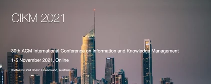 第30届ACM信息与知识管理国际会议(CIKM 2021)于11月1日至5日在线举行。本次会议共收到1251篇长文(Full Paper)和626篇短文(Short Paper)投稿,其中271篇长文和177篇短文被大会接收,录取率分别为21.7%和28.3%。接收论文列表见https://www.cikm2021.org/accepted-papers。