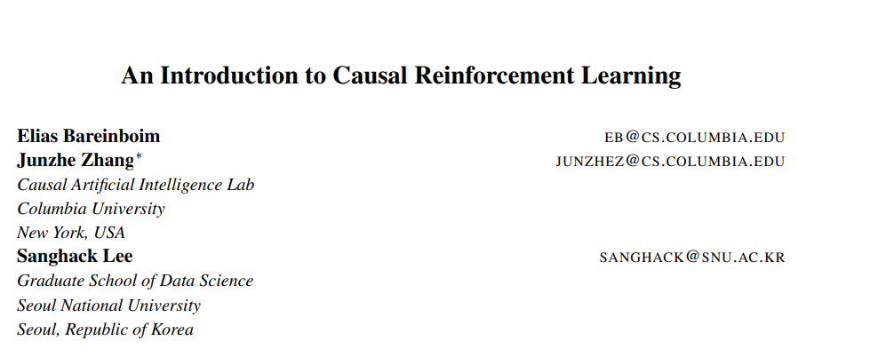 关键词 结构因果模型、干预、反事实、强化学习、可识别性、稳健性、策略外评估、模仿学习。