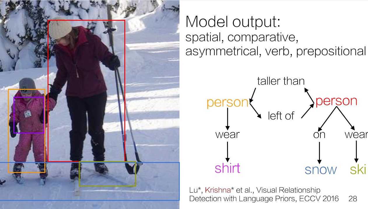 简介: 计算机视觉研究大多都集中在不重叠的目标对象上,然而,目标对象却不足以描述丰富的视觉知识,于是,研究者就通过语言特征来获取更多的信息。通过图片与文字叙述相结合的多模态信息融合来获取一个场景图谱。