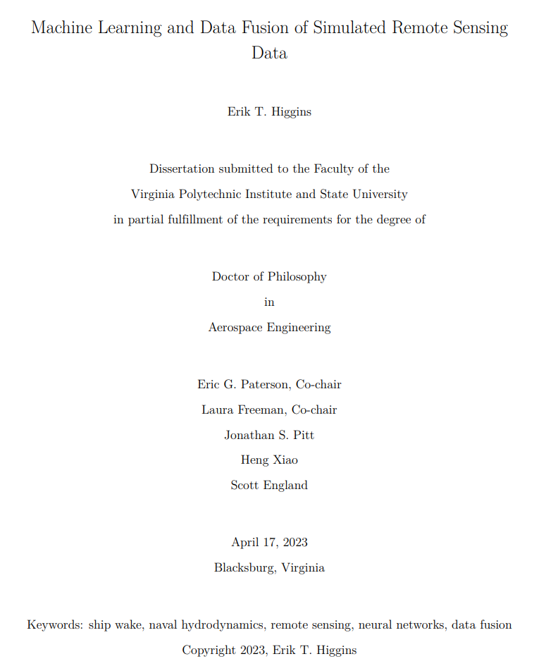 在一个工作流程中描述并实施了建模和仿真工具,以开发一种模拟船尾的方法,然后模拟这些船尾的合成孔径雷达(SAR)和红外(IR)图像。对几种不同的海洋环境和模拟遥感平台进行了参数研究,以生成初步数据集,用于训练和测试基于神经网络的船舶尾流探测模型。对几种不同的模型结构进行了训练和测试,这些模型结构在对输入的合成孔径雷达图像是否包含持续性船尾进行分类方面具有很高的准确性。研究人员还探索了几种数据融合模型,以了解不同合成孔径雷达波段的数据融合如何改进船尾探测,其中一些神经网络和数据融合模型的组合实现了完美或接近完美的性能。最后,创建并讨论了跨多种传感器模式的多物理场数据融合的未来研究大纲。