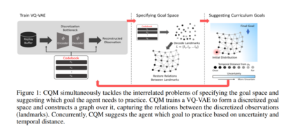 近期的课程强化学习(RL)在通过提出替代任务序列来解决复杂任务方面取得了显著进展。然而,之前的方法在生成高维空间的课程目标时常常面临挑战。因此,它们通常依赖手动指定的目标空间。为了缓解这一限制并提高课程的可扩展性,我们提出了一种新的课程方法,该方法自动定义包含课程过程的关键信息的语义目标空间,并在其上建议课程目标。为了定义语义目标空间,我们的方法通过向量量化变分自动编码器(VQ-VAE)离散化连续观测,并通过图形恢复离散化观测之间的时间关系。同时,我们建议的方法考虑到不确定性和时间距离,使课程目标收敛于自动组合的目标空间上的最终目标。我们证明了所提出的方法允许在只有原始目标示例的无信息环境中进行有效的探索。此外,我们的方法在数据效率和性能方面超越了最先进的课程RL方法,即使在以自我为中心的视觉输入的各种目标达到任务中也是如此。