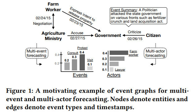 对于来自开源社会传感器的多种类型并发事件及其相关参与者进行建模是许多领域(如医疗保健、救灾和金融分析)的一项重要任务。预测未来的事件可以帮助人类分析师更好地理解全球社会动态,并做出快速而准确的决策。预期参与这些活动的参与者或参与者还可以帮助涉众更好地响应意外事件。然而,由于以下几个因素,实现这些目标是具有挑战性的:(i)难以从大规模输入中过滤出相关信息,(ii)输入数据通常为高维非结构化和Non-IID(非独立同分布),(iii)相关的文本特征是动态的,随时间而变化。最近,图神经网络在学习复杂和关系数据方面表现出了优势。本文研究了一种基于异构数据融合的时间图学习方法,用于预测多类型并发事件并同时推断多个候选参与者。为了从历史数据中获取时间信息,我们提出了一种基于事件知识图的图学习框架Glean,它结合了关系和单词上下文。我们提出了一个上下文感知的嵌入融合模块来丰富事件参与者的隐藏特性。我们在多个真实数据集上进行了广泛的实验,结果表明,所提出的方法在社会事件预测方面与各种先进的方法相比具有竞争力,而且还提供了急需的解释能力。
