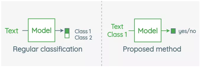 本文提出了一种简单的零样本分类方法。他们没有将文本分类为X类,而是将任务重新组织为二元分类,以确定文本和类是否相关。