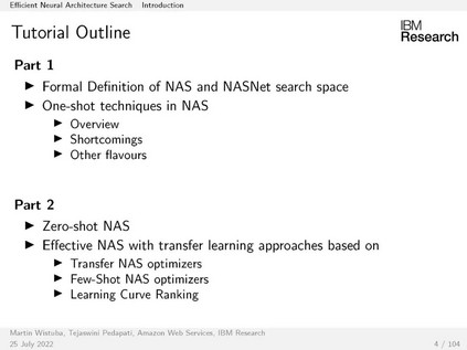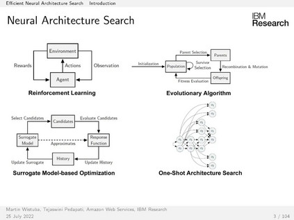 深度学习自动化的兴趣日益增长,导致了神经体系结构搜索的各种自动化方法的发展。然而,最初的神经架构算法是计算密集型的,需要好几天的GPU时间。训练候选网络是搜索过程中代价最高的步骤。接下来的几个算法提出了在候选网络之间共享参数,而不是从头开始训练每个候选网络。但是这些参数共享算法也有其自身的缺陷。在本教程中,我们将概述一些一次性算法、它们的缺点以及如何对付它们。后来的进步通过使用零样本、少样本和迁移学习等技术训练更少的候选者来加速搜索。通过使用随机初始化的神经网络的一些特性,一些搜索算法能够找到性能良好的模型。有些方法利用了迁移学习,而不是从头开始寻找。在本教程中,我们将介绍几种加速神经体系结构搜索的算法。