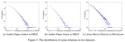 摘要: 异构信息网络嵌入(Heterogeneous information network, HIN)以将其投射到低维空间为目标,已经引起了相当多的研究关注。现有的HIN嵌入方法主要是在欧几里得空间中保留内部网络结构和语义相关性。然而,一个基本的问题是欧几里得空间是否是HIN的合适的或内在的等距空间?。近年来的研究认为,复杂网络的底层可能具有双曲几何,因为底层的双曲几何可以自然地反映复杂网络的一些特性,如层次结构和幂律结构。在本文中,我们首次尝试将HIN嵌入到双曲空间中。我们分析了两个实际HIN的结构,发现HIN中也存在幂律分布等性质。为此,我们提出了一种新的双曲异构信息网络嵌入模型。具体地说,为了捕获节点之间的结构和语义关系,我们采用元路径引导随机游走对每个节点的序列进行采样。然后利用双曲空间中的距离作为近似度量。双曲距离能满足三角不等式,并能很好地保持HIN中的传递性。我们的模型使节点及其邻域具有小的双曲线距离。进一步推导出有效的优化策略,迭代更新双曲嵌入。实验结果表明,该模型不仅在网络重构和链路预测任务上具有优越的性能,而且在HIN中通过可视化显示了捕获层次结构的能力。