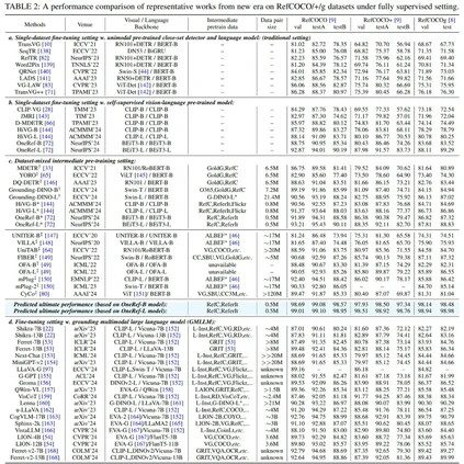 论文表 2. 全监督视觉定位按三种实验设置进行划分的 SoTA 结果对比