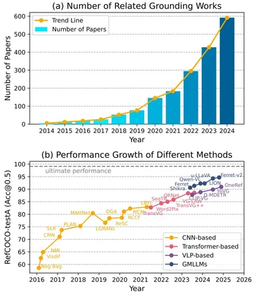 人工智能领域中,视觉感知和自然语言理解的多模态融合学习已经成为在机器中实现类人认知的关键。其核心是视觉和语言线索的融合,旨在弥合图像场景与语言表达之间的语义鸿沟。而视觉定位,代表了这样一种基本的目标,其包括人工智能模型在语言描述和相应的视觉元素之间建立内在联系的能力。