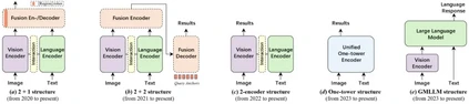 在上述这些设置中,特别是全监督设置,其作为主流的设置在论文第 3 章中进行了重点介绍。在技术路线上,如图 3 所示,作者将现有的技术路线分为 5 大类,分别是传统基于 CNN 检测器的方法,传统基于 Transformer 的方法,基于 VLP 模型的方法,定位导向的预训练方法,以及在 2023 年涌现的定位多模态大语言模型的方法。针对传统基于 CNN 检测器的方法,如图 8 所示,作者首先介绍在传统 CNN 时期的一阶段视觉定位和二阶段视觉定位的处理流程。随后,如图 9 所示,作者在这一章中,分析概括了现有全监督视觉定位的五种代表性模型框架(即,2 个模态编码器 + 1 个融合编码器,2 个模态编码器 + 1 个融合编码器 + 1 个解码器,仅 2 个模态编码器结构,单塔编码器结构,以及当前的定位多模态大语言模型结构)。此外,如图论文表 2 所示,作者还对现有的全监督设置在数据集的使用上划分出四种实验大类设置已进行公平的比较,分别是基于单模态预训练的闭集检测器和语言模型的单数据集微调,基于自监督多模态视觉语言预训练模型的单数据集微调,基于多数据集混合的中间预训练设置,以及定位多模态大语言模型。