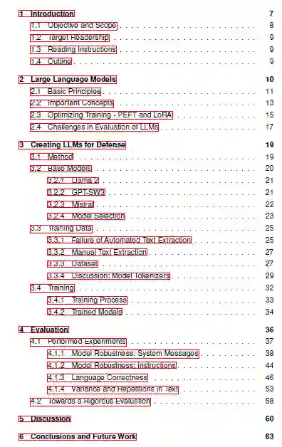 目前,有关 LLM 的情况既乐观又不确定。一方面,LLM 可能即将彻底改变无数人类认知被认为是必要条件的过程,无论是在民用领域还是军事领域。另一方面,LLM的可靠性尚不明确,各组织有可能被突破性技术的热情所冲昏头脑,将 LLM强加到它们(尚)不适合的应用中。 本报告介绍了如何谨慎地将 LLM 用于与国防相关的目的。详细介绍了几种现代 LLM 的训练过程。然后对 LLM 的鲁棒性和输出质量进行了评估。国防领域涵盖了广泛而多样的主题,而 LLM 在某一主题上的性能取决于是否准备了大量具有高质量和相关性文本的训练语料库。因此,由于资源有限,本报告缩小了训练领域的范围,将重点放在旨在为安全政策分析人员提供支持的 LLM 示例上。