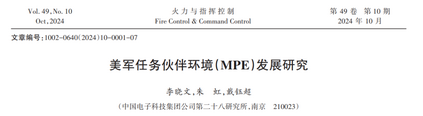 摘 要:“任务伙伴环境”(mission partner environment,MPE)是美国防部与任务伙伴共同开展军事任务指挥控 制与信息共享的作战框架。研究了美军 MPE概念内涵、发展背景,梳理了 MPE的类型与支持的行动级别,全面分 析了MPE组成架构;重点研究了MPE的核心——多国信息共享(multinational information sharing,MNIS)体系,分析 了 MNIS的主要组成部分——虚拟数据中心、联合企业区域信息交换系统、联军联邦作战实验室网络、共用任务网 络传输系统、“飞马”系统和所有伙伴接入网的功能与发展现状;介绍了MPE的最新发展并分析了MPE从以网络为 中心向以数据为中心发展的主要趋势。 关键词:任务伙伴环境;阿富汗任务网;多国信息共享体系;联合全域指挥控制