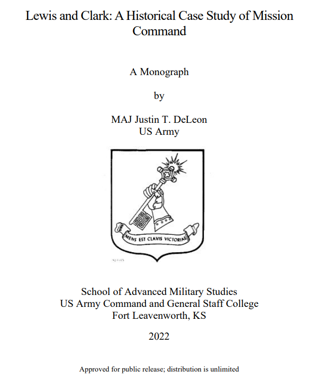 为了更好地理解如何在通讯受阻或被剥夺的环境中实施任务式指挥,美国陆军领导人可以从路易斯和克拉克探险队(1803-1806 年)中汲取启示。这次远征展示了领导者如何根据当代任务式指挥条令建立积极的组织文化。这一事实反过来又揭示了如何运用任务式指挥原则,在模糊和沟通受阻的环境中开展分布式作战。