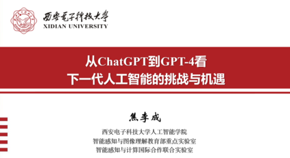 工信部十七部门提出了“机器人+”的这个应用实现的方案,同样也说明了场景应用的重要性。六个部委提出的《关于加快场景创新及人工智能高水平应用的意见》也说明了这一点。教育部出台的2020到2030高等学校人工智能的创新计划,也是从创新体系和学科体系的布局,人才培养综合考虑。同时教育部出台人工智能领域研究生的指导方案,也说明国家对这是非常重视的。而且这些培养方案更要求我们对人工智能领域要有一个全面的认识。ChatGPT所涉及的自然语言处理领域也是必不可少的一部分。经过三十余年的积累,我们团队在教育、科技等方面做了一些我们自己的工作。西电是全国三所人工智能+教育的标杆大学之一,我们希望能够在这个领域对人工智能教育做一些探索。面向国家的战略需求,在遥感领域和医疗领域,研制了类似于ChatGPT这样的应用。从感知人工智能到认知人工智能是一个重大的转变,还有很长的路要走,也涉及到各个方面。**因此,关于****ChatGPT给我们的启发,更需要从源头去创新,从生物机理、物化原理,数学建模、算法设计与优化、硬件设计与实现、开放的环境感知、重大的应用场景等角度,杜绝短板,去全面探索,建立我国全栈式的人工智能生态环境。**谢谢大家!