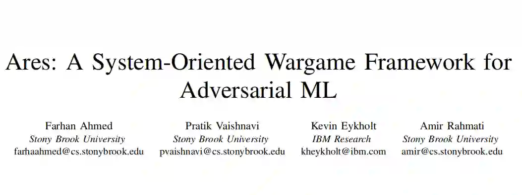 在本文中,我们旨在设计和实现Ares,这是一个对抗性ML的评估框架,允许研究人员在一个现实的兵棋推演环境中探索攻击和防卫。Ares将攻击者和防御者之间的冲突设定为强化学习环境中目标相反的两个Agent。这允许引入系统级的评估指标,如失败的时间和评估复杂的策略,如移动目标防御。我们提供了我们初步探索的结果,涉及一个白盒攻击者对一个经过对抗性训练的防御者。