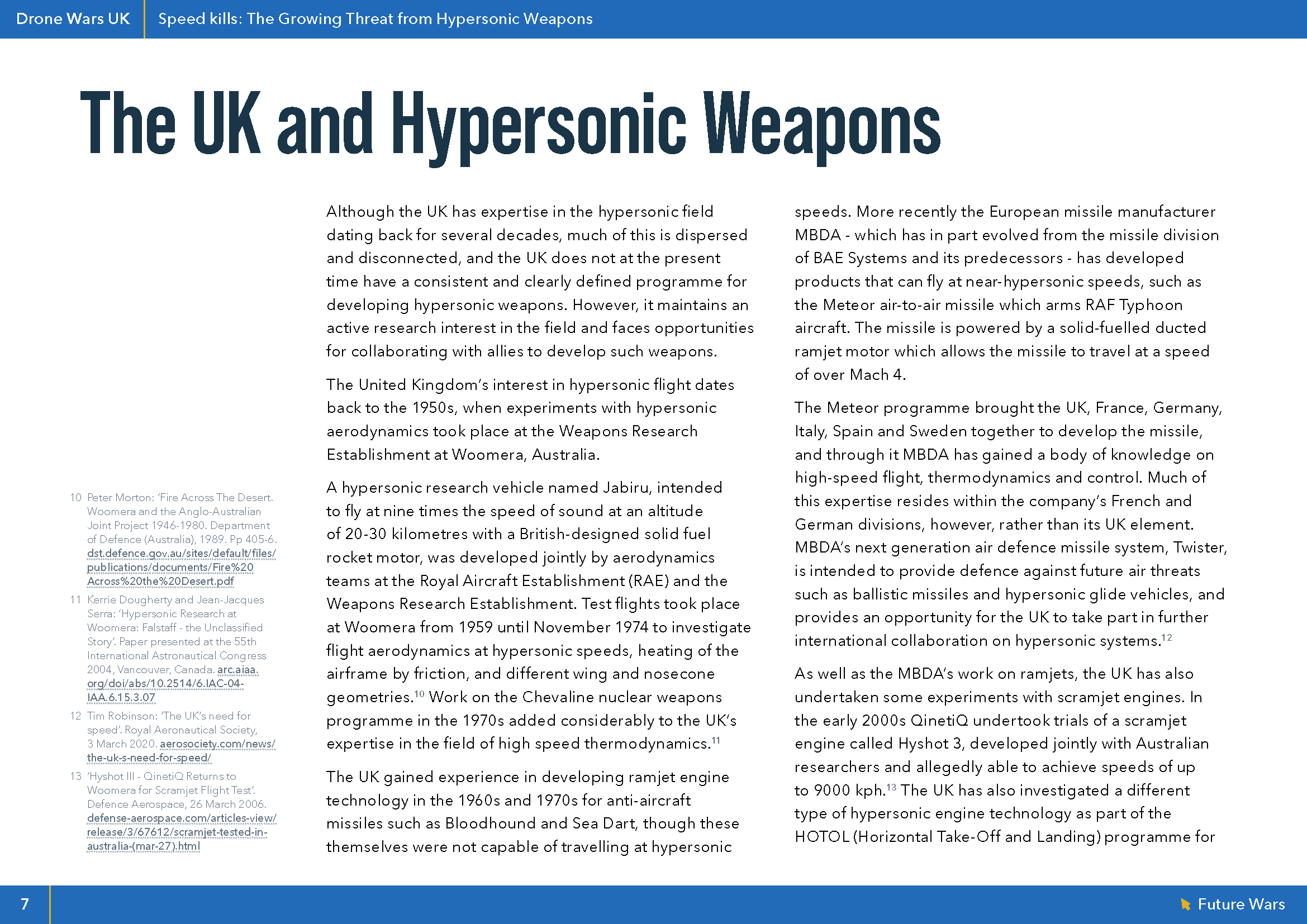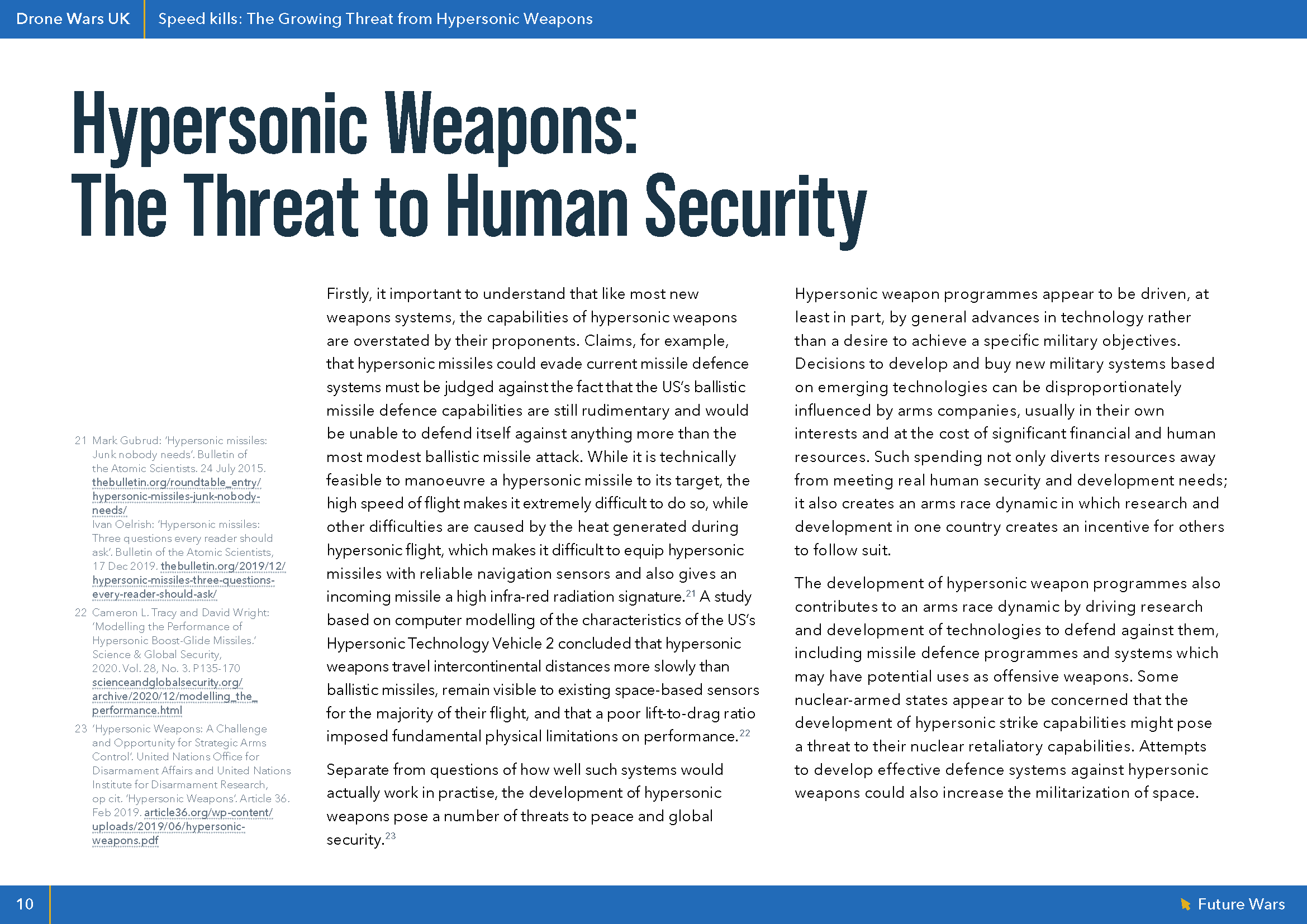 本简报来自Drone Wars UK ,探讨了高超音速武器的发展、英国参与情况以及它们对和平与安全构成的风险。