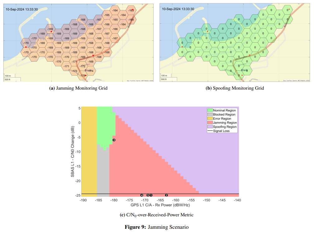 全球导航卫星系统(GNSS)信号的干扰与欺骗现象日益普遍,尤其与东欧和中东持续冲突相关。尽管这类射频干扰(RFI)事件通常局限于冲突区域,但其附带影响可蔓延至广阔地域,跨越数十至数百英里。商业领域中射频干扰事件频发的趋势凸显了对强大检测与特征分析系统的迫切需求,以保障航空、海事等依赖GNSS的行业安全。先前研究表明,接收功率与信噪比指标能有效识别射频干扰,因其可捕捉接收信号强度与底噪水平间的平衡。基于这些指标,商用GNSS接收机无需硬件改造即可检测并分析干扰和欺骗事件。有效监测范围受接收机灵敏度影响,当部署为网络时,此类接收机可为陆、海、空应用提供关键射频干扰态势感知。本文提出一种低成本监测(LCM)网络实施方案,采用2024年干扰测试数据,演示其检测与分析GNSS干扰和欺骗的能力。