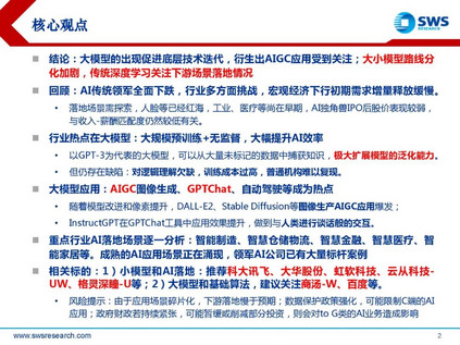 结论:大模型的出现促进底层技术迭代,衍生出AIGC应用受到关注;大小模型路线分化加剧,传统深度学习关注下游场景落地情况