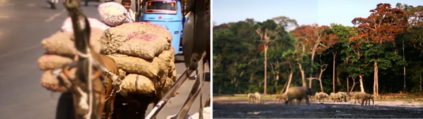 图2. TSR-WGAN改善图像模糊效应效果。图中左半部分为受大气湍流效应影响的退化图像,右半部分为TSR-WGAN校正后效果。