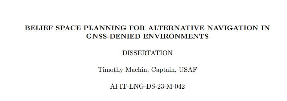 虽然许多规划算法都展示了对单一非全球导航卫星系统测量过程的使用,但还没有一种算法展示了对多个传感域和替代导航(alt-nav)技术的使用,以提供通过有争议环境的稳健导航计划。本文包括开发一种基于采样的信念空间规划(BSP)算法,该算法考虑到了多种替代导航测量技术,命名为快速探索随机信念替代导航图(RRBANG)算法。这项研究填补了规划研究与 Alt-nav 研究之间的空白,充分利用了两者的优势,根据智能体的各种感知能力,为到达目的地制定了稳健的计划。