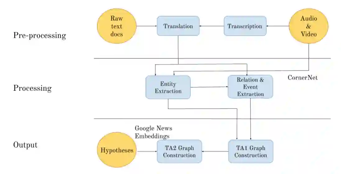 我们的项目是DARPA资助的Active Interpretation of Disparate Alternatives (AIDA)项目的一部分,该项目旨在自动建立一个知识库,可以通过查询来战略性地生成关于一个事件的不同方面的假说。我们作为TA1团队参与了这个项目,建立了整个系统的第一步。