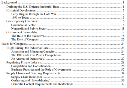自第二次世界大战以来,美国政府投入了大量的资源和关注,以确保国防工业能够满足国防需求。在国防部和行政部门内部,有各种各样的组织和计划来监控、保护和加强工业基础。国会每年拨款数千亿美元,用于从国防工业基础供应商处采购材料、产品和服务,并制定和资助了一系列旨在评估或修改国防工业基础整体各个方面的计划。国会还对行政部门行使工业基地相关职能的情况进行例行监督。