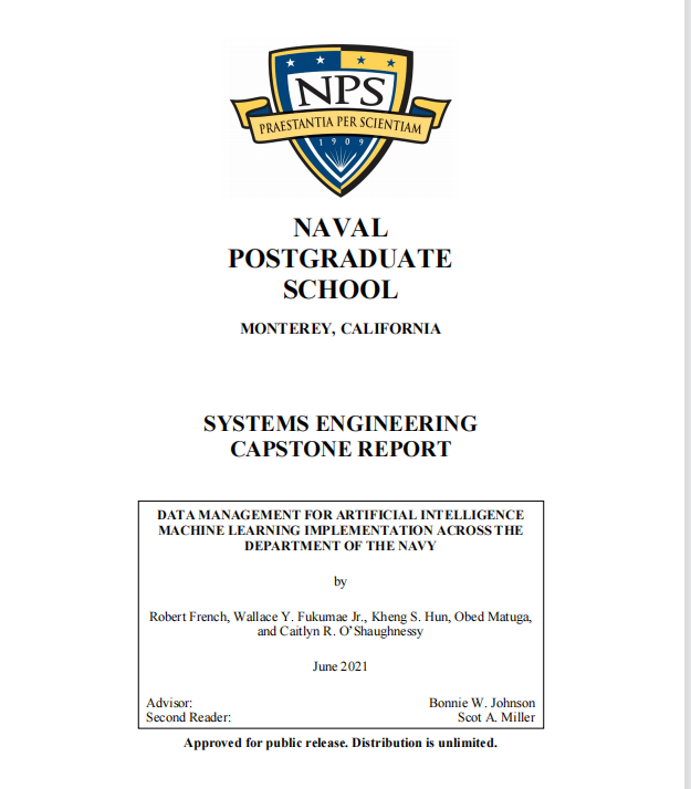 只有当美国国防部首先释放数据的力量,才能实现AI/ML系统的这些进步。目前,在获取或"释放"DON的数据以开发未来的AI/ML系统方面存在许多障碍。整个海军的数据主要停留在"筒仓"或难以访问的数据库中,每个"筒仓"都在其领域内受到保护。在DON的数据领域内,定位、请求、获取和策划数据的过程并不正式。米勒(2021)说:"数据的所有者是美国人民。海军只是管理人和监护人"。这句话包含了将数据从孤岛中 "解放"出来的需要,以使海军真正成为一个以数据为中心的企业,并实现海军的数字化准备。