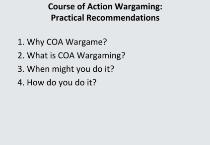 《作战方案(COA)兵棋推演: 实用建议》36页slides