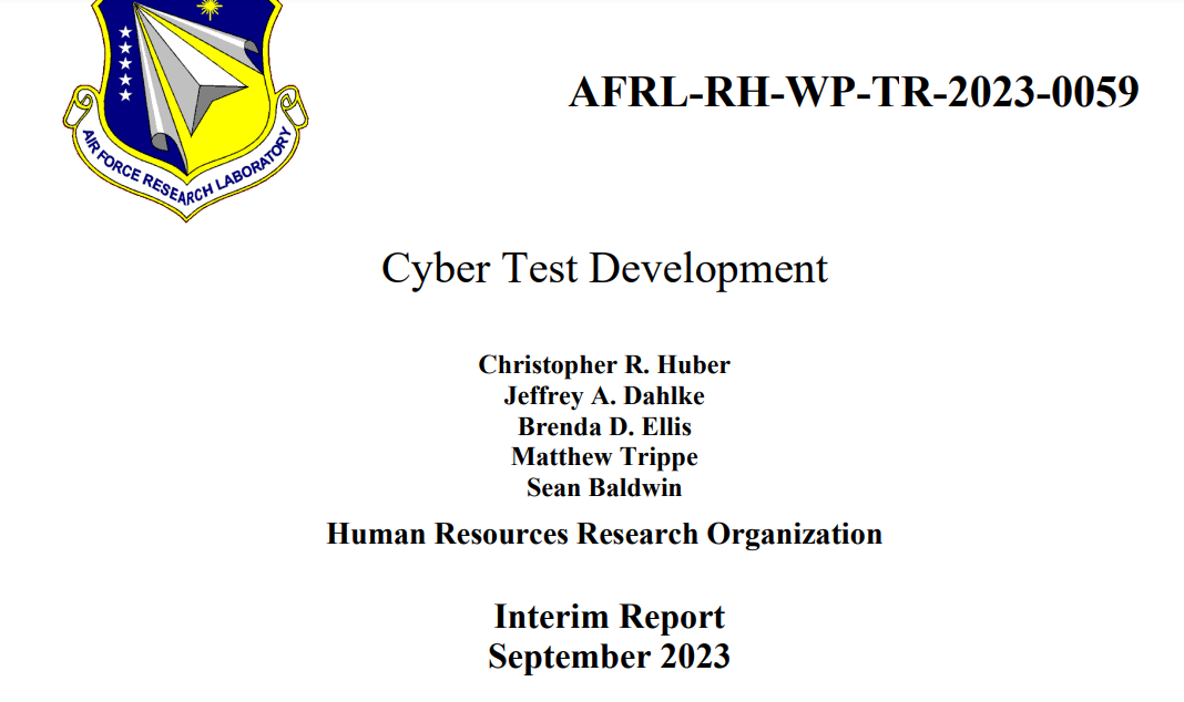除了开发新的操作表格,还采取措施进一步扩大网络测试项目库,为未来的测试开发工作做好准备。首先,与来自各军种的网络主题专家 (SME) 开展了一次大型审查活动,以更新测试蓝图。然后,招募了 SME 项目编写人员,根据测试蓝图开发和完善新项目。这一开发和审查过程产生了 205 个新的实验项目,将其交付国防测试评估中心 (DTAC) 进行试点测试。