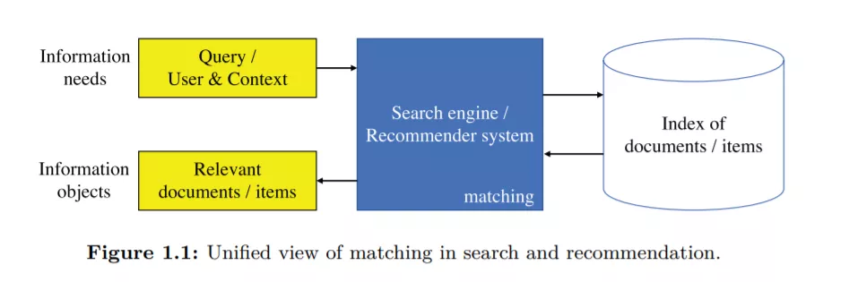 匹配在搜索和推荐中都是一个关键问题,它是衡量文档与查询的相关性或用户对某个条目的兴趣。机器学习已经被用来解决这个问题,它根据输入表示和标记数据学习匹配函数,也被称为“学习匹配”。近年来,人们努力开发用于匹配搜索和推荐任务的深度学习技术。随着大量数据的可用性、强大的计算资源和先进的深度学习技术,用于匹配的深度学习现在已经成为最先进的搜索和推荐技术。深度学习方法成功的关键在于它在从数据(例如查询、文档、用户、条目和上下文,特别是原始形式)中学习表示和匹配模式的泛化方面的强大能力。