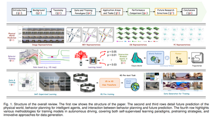 关键词——自动驾驶、世界模型、自监督学习、行为规划、生成方法 1 引言 1.1 概述 完全自动驾驶的追求已经迅速成为全球科学研究和工业努力的焦点。其核心目标是同时减少交通事故、缓解拥堵,并提升不同社会群体的出行能力[1]。现有统计数据显示,人为错误仍然是道路事故的主要原因[2],这表明,减少人工干预可以显著降低与交通相关的死亡和伤害的发生率。除了安全性,经济因素(例如,减少拥堵和优化物流)也推动了自动驾驶技术的发展[3]。 尽管这些激励因素令人信服,实现高水平的自动驾驶仍需克服相当大的技术难题。最重要的挑战之一是感知和理解动态交通场景,这要求将异构传感器数据流(例如激光雷达、雷达、摄像头)融合成一个统一的环境表示[4],[5]。从复杂的城市布局到高速公路,自动驾驶车辆必须快速吸收多模态数据,检测关键物体(如车辆、行人、自行车骑行者),并预测它们在不同条件下的运动——例如恶劣天气、无结构道路或繁忙的交通[6],[7]。此外,实时决策还带来了严格的计算约束,要求系统在毫秒级响应时间内应对突发障碍物或异常行为[8],[9]。同样关键的是,系统在极端或长尾场景(例如严重天气、施工区或异常驾驶行为)下的鲁棒性,在这些情况下,性能不足可能会危及整体安全性[10],[11]。 在这一背景下,构建稳健且稳定的世界模型已成为基础性要素。世界模型的概念包括创建一个高保真的驾驶环境表示——涵盖静态结构(如道路、建筑)和动态实体(如车辆、行人)[3],[8]。一个全面的世界模型不断捕获语义和几何信息,同时实时更新这些表示,从而为下游任务(如物理世界预测)提供支持[12],[13]。近期的进展通过集成多传感器数据来细化这些表示,例如生成性方法[14],[15],这些方法通过模拟物理世界来进行训练,将异构传感器输入统一为一致的自上而下的视角[16],[17]。 这些稳健的世界模型利用环境表示来优化智能体的行为规划,为更安全和更高效的自动驾驶应用奠定了基石。通过实现主动轨迹优化、实时危险检测和自适应路线规划,它们能够直接降低突发危险所带来的风险[5],并与不断发展的车联网(V2X)系统相契合[9]。最终,世界模型促进了感知和控制子系统之间更紧密的集成,简化了闭环自动驾驶管道[18],[19]。 现有关于世界模型在自动驾驶中的综述通常可分为两类。一类主流综述侧重于描述广泛应用于多个领域的世界模型[20]–[22],其中自动驾驶只是一个特定应用领域。第二类综述[23],[24]则专注于世界模型在自动驾驶领域中的应用,尝试总结该领域的现状。目前,关于自动驾驶中世界模型的综述较少,它们通常对这些研究进行大致分类,且常常仅关注世界仿真或缺乏对行为规划与物理世界预测交互的讨论,导致该领域缺乏清晰的分类体系。本文的目标不仅是正式定义和分类自动驾驶中的世界模型,还提供对近期技术进展的全面回顾,并探索其在多个领域的广泛应用,特别强调它们在自动驾驶中的变革性潜力。这一结构化的分类方法使我们能够突出这些模型如何根据汽车行业的挑战进行塑造和适应。 1.2 贡献 本文综述的指导思想是世界模型是理解动态场景的核心,旨在提供一个全面、结构化的现有方法论回顾。我们将最前沿的研究分类为三个关键领域: 物理世界的未来预测:聚焦于动态物体和静态实体的物理世界演化[11],[25]; 智能体的行为规划:研究生成式和基于规则的规划方法,这些方法在不确定的驾驶条件下生成安全、有效的路径[12],[13]; 行为规划与未来预测之间的交互:强调统一框架如何捕捉智能体之间的交互,并利用预测性洞察进行协同优化[18],[26],[27]。 具体来说,我们提供: 未来预测模型的深入分析:我们讨论了基于图像/鸟瞰图/物体图/点云的研究如何在动态场景中实现几何和语义的高保真度,包括4D占用预测和基于扩散的生成方法。 行为规划研究:我们探索了基于规则和基于学习的方法在行为规划中的应用,展示了在鲁棒性和避碰性能上的显著提升。 交互模型研究的提案:我们系统回顾了交互模型,这些模型共同解决未来预测和智能体行为问题,并说明这种协同如何大幅提升现实世界的适应性和操作安全性。 我们总结了目前的开放挑战,如自监督方法的无缝集成[26]、稀有事件增强的大规模仿真[10],[28]、以及实时多智能体协调[27],并为未来的研究提供了方向。随着研究领域的不断扩展以及现实世界应用的紧迫性,本综述旨在为研究人员和实践者提供有价值的参考,为更安全、更稳健的自动驾驶解决方案奠定基础。 1.3 结构 本文的结构概览见图1,具体如下:第1节介绍了世界模型在自动驾驶中的重要性,并概述了它们解决的社会和技术挑战。第2节提供了世界模型在自动驾驶中的背景知识,重点讨论了物理世界的未来预测和智能体的行为规划。第3节详细介绍了方法的分类:第3.1节讨论了物理世界的未来预测方法,涉及动态物体和静态实体的物理世界演化;第3.2节讨论了强调生成安全、有效驾驶策略的先进行为规划方法;第3.3节研究了未来预测与行为规划之间的交互关系,重点介绍了复杂场景下的协同优化技术。第4节探讨了数据和训练范式的不同方法,包括监督学习、自监督学习和数据生成技术。第5节考察了世界模型应用的领域和任务,讨论了这些技术在感知、预测、仿真和系统集成等多个领域的影响。第6节对自动