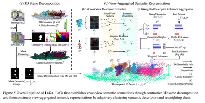 近年来,3D高斯溅射(3D-GS)在从RGB图像中进行高质量的3D场景重建方面取得了显著进展。许多研究扩展了这一范式,应用于语言驱动的开放词汇场景理解。然而,大多数研究仅仅将2D语义特征投影到3D高斯分布上,忽视了2D与3D理解之间的根本差距:3D物体在不同视角下可能呈现出不同的语义特征——这一现象我们称之为视角依赖语义。为了应对这一挑战,我们提出了LaGa(语言高斯),它通过将3D场景分解为物体,建立跨视角的语义关联。接着,它通过对语义描述符进行聚类,并根据多视角语义重新加权,构建视角聚合的语义表示。大量实验表明,LaGa能够有效捕捉视角依赖语义中的关键信息,从而实现对3D场景的更全面理解。值得注意的是,在相同设置下,LaGa在LERF-OVS数据集上相较于之前的SOTA,mIoU显著提升了+18.7%。我们的代码已开放,地址为:https://github.com/https://github.com/SJTU-DeepVisionLab/LaGa。