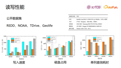 在应用方面:上海地铁运行了两年半,管理了100万时间序列数据。湖南湘潭和耒阳电厂数据管理系统应用IoTDB运行了20个月,管理1万条序列。东莞东城环卫管理系统中管理的各种环卫车的数据,运行两年多时间中管理着数千条序列。