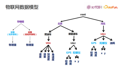 基于TsFile两层设备和物理量模型,我们在数据库层面扩展了丰富的树形结构的物联网数据模型。树形结构对应了层级管理设备资产的方式,即设备归属的区域、设备的类型、设备号。从Root到倒数第二层节点的全路径来定位设备ID。这种建模方式可以把一个应用的所有时间序列都统一到一棵树中进行管理。