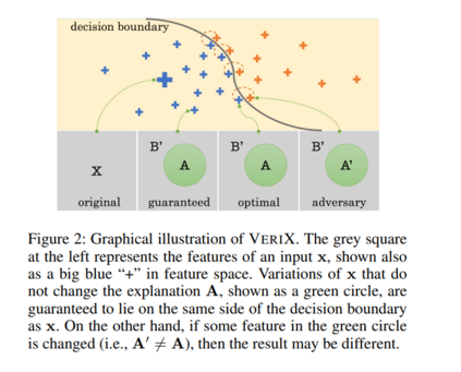 我们提出了VERIX,这是在安全关键应用中向验证机器学习模型的可解释性迈出的第一步。具体地说,我们的合理和最优解释可以保证对有界扰动的预测不变性。我们利用约束求解技术和特征灵敏度排序来有效地计算这些解释。我们评估了我们的方法在图像识别基准和一个真实场景的自动驾驶飞机滑行。