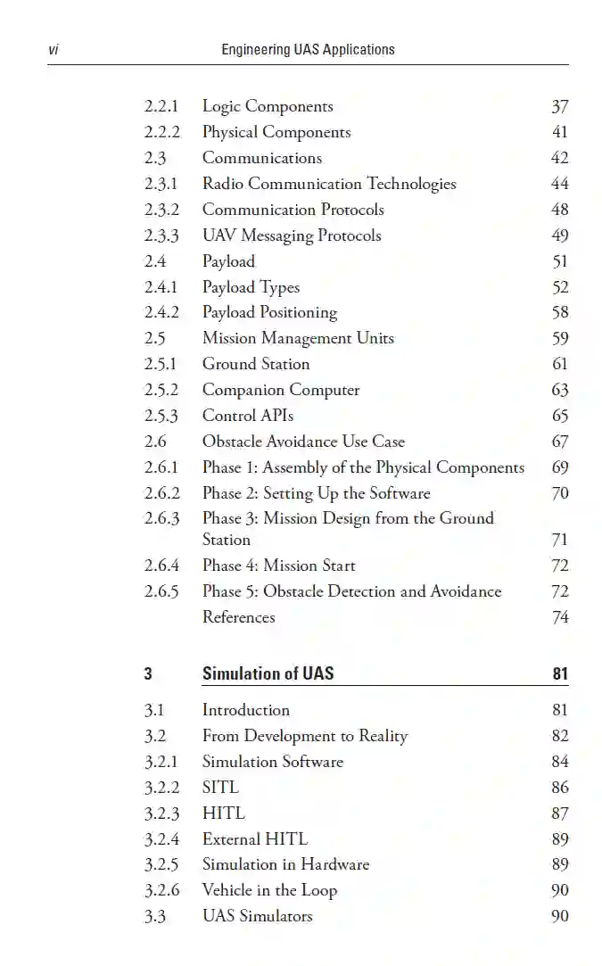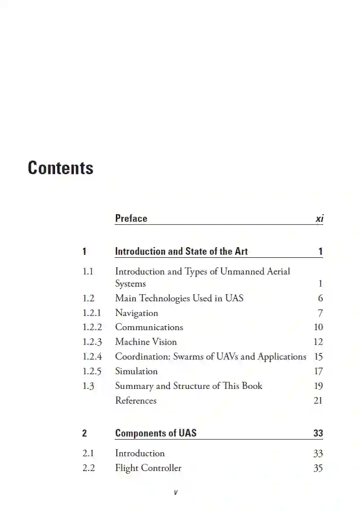 本书具有实际的焦点,将无人机呈现为实现特定任务的手段,如在预定义的任务中导航时的数据收集或物体检测。它旨在帮助将理论概念转化为具体应用,使用低成本的开源飞行控制系统,以便于理解理论概念,并复制示例。因此,用于数据交换、机器学习或计算机视觉的一些软件库将以示例描述,以开发UAS的关键功能。总之,本书旨在在理论基础和工具描述与实际示例之间实现适当的平衡,提供安装、分析和评估真实系统中UAS解决方案的教训,回顾应用于开发UAS的主要启用技术,并包括评估方法和使用和配置完整平台和软件工具的指南。