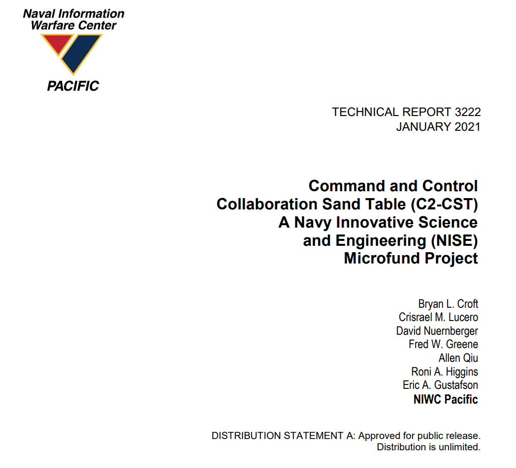 美太平洋海军信息战中心(NIWC Pacific)的海军创新科学与工程(NISE)微型基金项目 “指挥与控制协作沙盘(C2-CST)”研究了一种新的商用现货(COTS)产品--微软 HoloLens。该项目旨在为具有协作分类级别的指挥与控制 (C2) 系统研究一种新的人机界面。微型基金项目是一个小型资助项目,可快速周转,用于探索科技(S&T)创意。这些想法将在很短的时间内得到实施,并产生最终的技术演示、概念验证、原型或报告,具有高风险和高回报的潜力。
