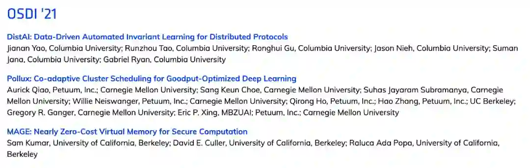 第 15 届 USENIX OSDI 于 2021 年 7 月 14 日至 16 日线上举行,日前最佳论文等奖项已经陆续公布,共有 3 篇最佳论文,来自卡内基 · 梅隆大学(CMU)邢波教授的研究团队摘得其中一篇。我们来看一下这 3 篇最佳论文的具体内容。