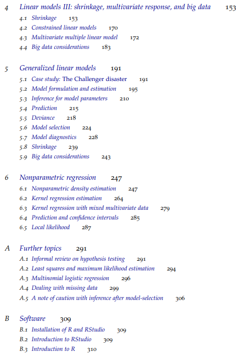这些笔记包含统计方法的理论和实践。重点是针对方法建立直觉,深入了解它们的特性,并通过使用统计软件展示其应用。对线性模型和不同变体的深入分析,对广义线性模型的扩展,以及对非参数回归的介绍。