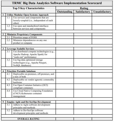 本节根据可行的 T&E BDA-KM 软件实施的关键特征提供了一个实施记分卡。