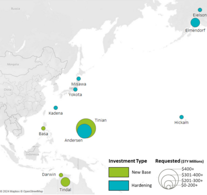 图:太平洋空军司令部申报的新建与加固军事建设项目投资(2019财年-2024财年)