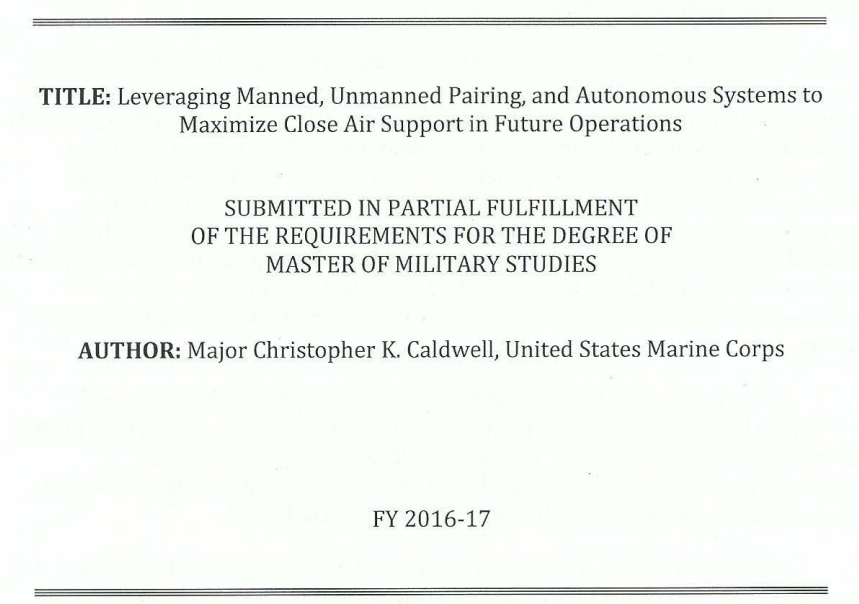 美海军陆战队应投资于现有的武装无人机系统 (UAS),并进一步完善成对和自主系统,以最大限度地发挥无人系统的技术优势。