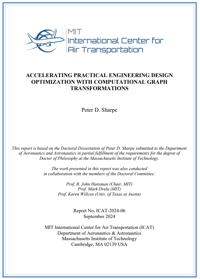 5. 基于最少传感器数据的飞机系统辨识(第8章):最后,本章证明了代码变换范式能够促使在设计之外的应用中快速构建优化问题。这使得在原本问题构建过程会过于繁琐的场景下使用数值优化变得有吸引力。例如,论文将展示一个应用于飞机系统辨识和基于最少飞行数据的性能重构的实例。在此,基于物理的修正与统计推断技术结合使用,以从单次短时间试飞中准确估计飞机性能特征。