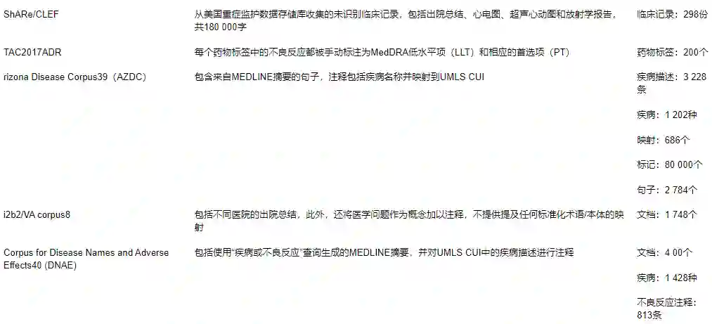医学实体链接较常用的数据集主要有以下几种,见表5。