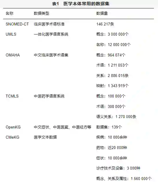 2019年,Lytvyn V等人提出了从自然文本中提取知识的方法和算法(包括一个基于本体引入的概念、关系、谓词和规则的多层次过程),建立了一种基于本体的本体开发方法,该方法利用现有本体对文本文档进行分析,构建了命名和本体术语体系。这使得本体开发过程自动化成为可能。 再者,由于医学信息的特殊性,对医学信息的匿名化处理在本体构建过程中也是一个难点。2017年,Polsley S等人提出一种可识别被映射到本体论术语的受保护健康信息(protected health information, PHI)的方法,临床专家使用数百份医学文献对该方法进行了评价,F1分数达98.8%,在后续处理中保留语义信息具有一定的前景。但该方法仍有较大的局限性,需要不断地进行优化。